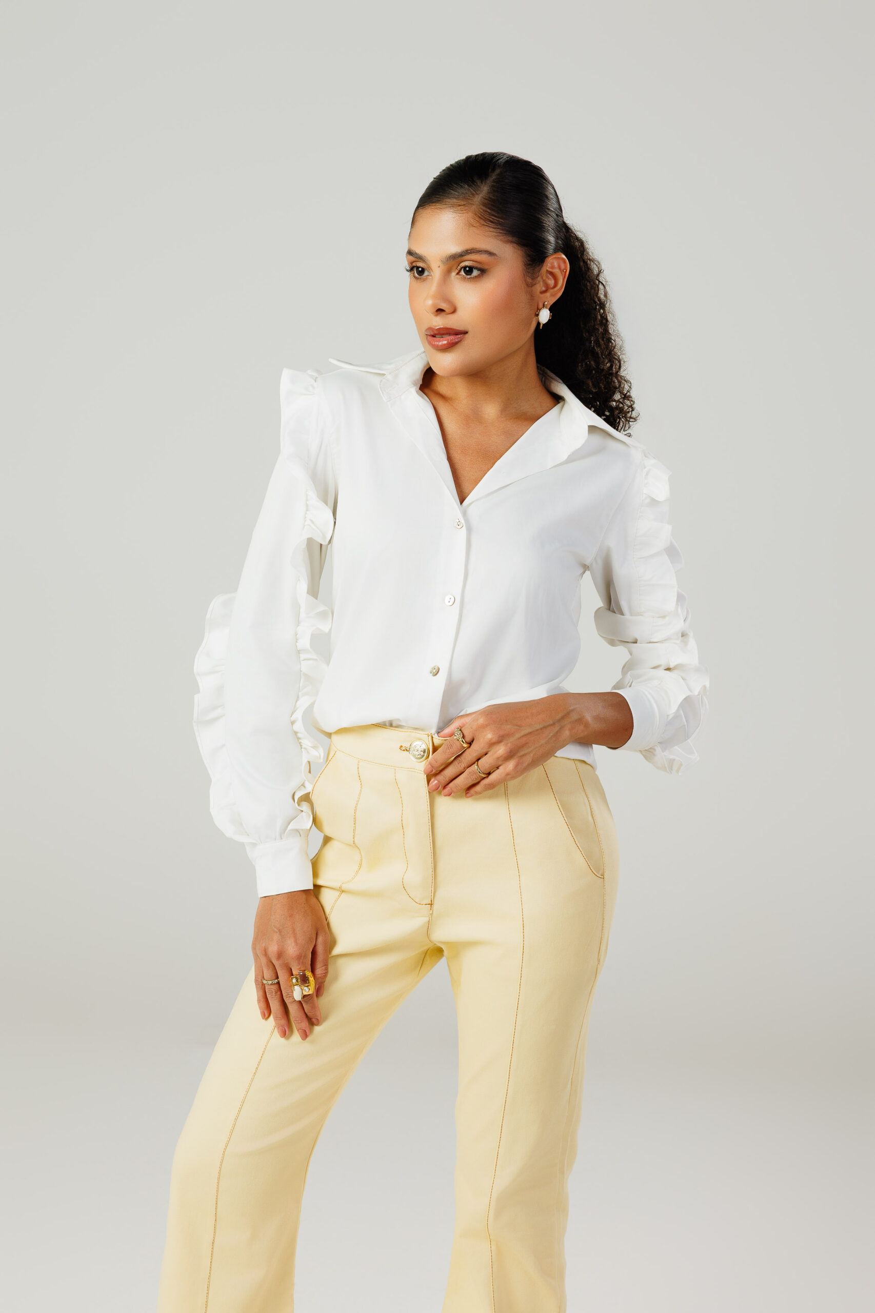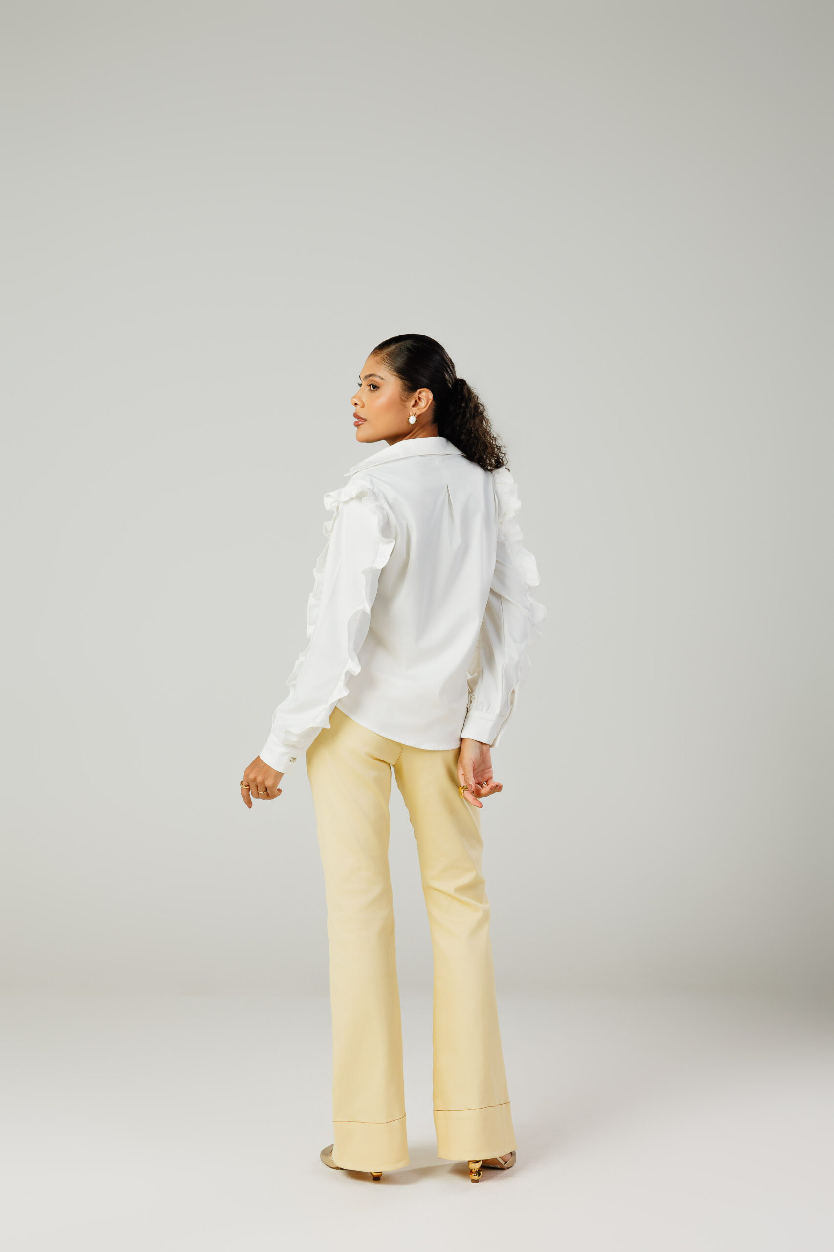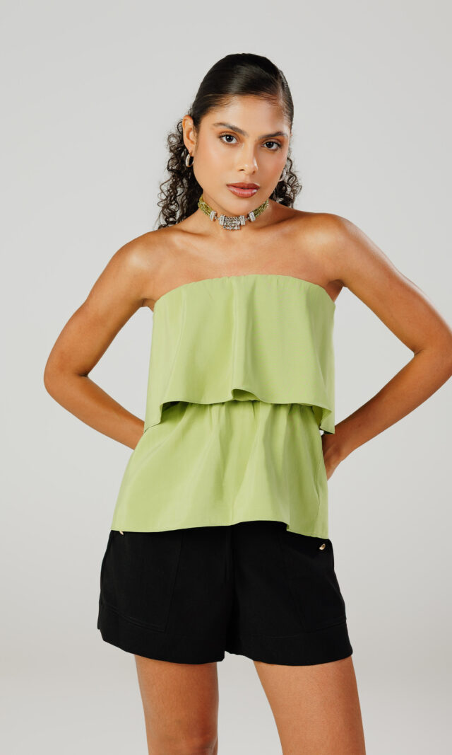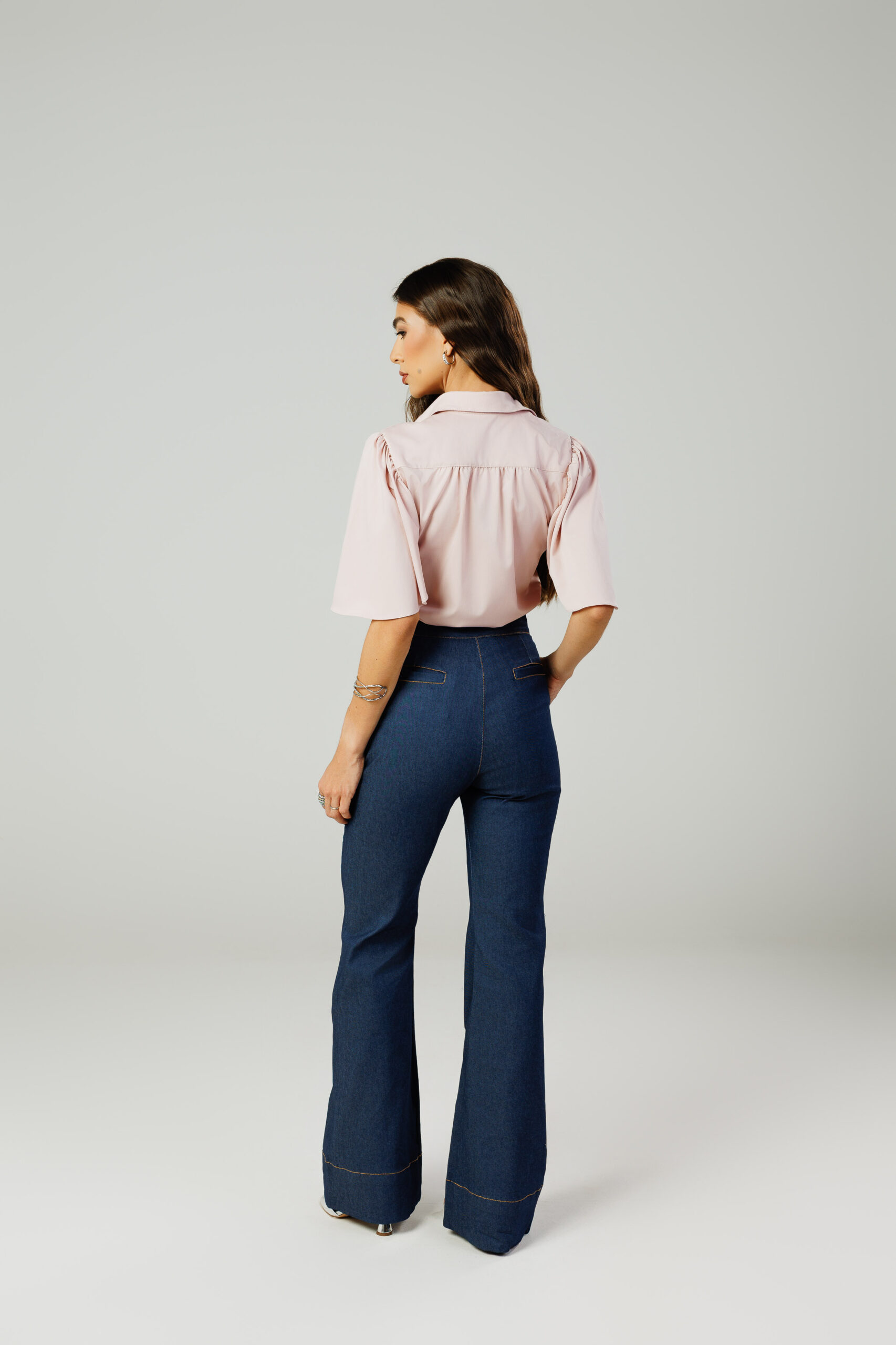 VANTAGENS: a modelagem flare equilibra a silhueta, enquanto o tecido com leve stretch garante conforto e ajuste ao corpo.