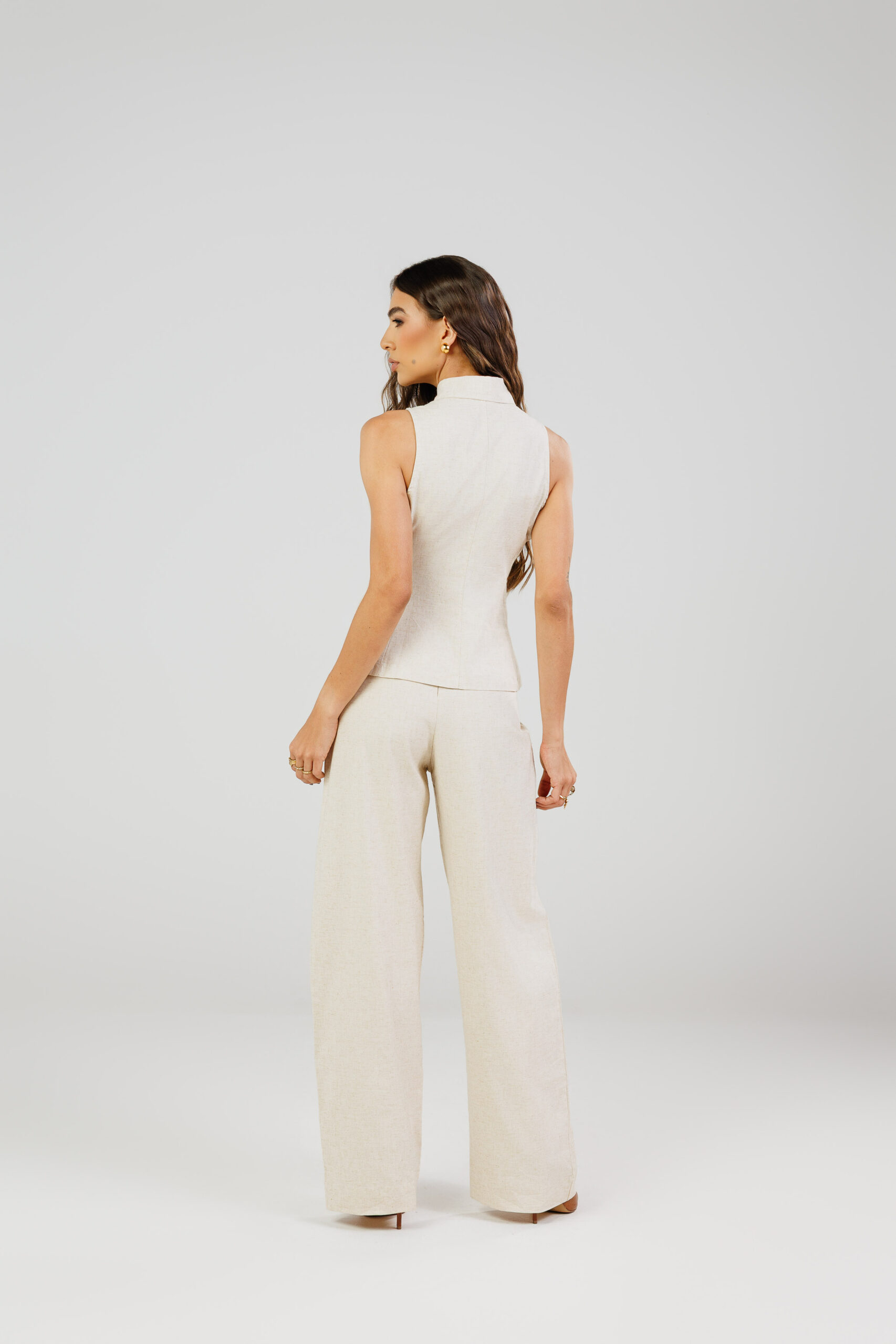 Combine com acessórios dourados ou naturais para harmonizar com a proposta da peça.