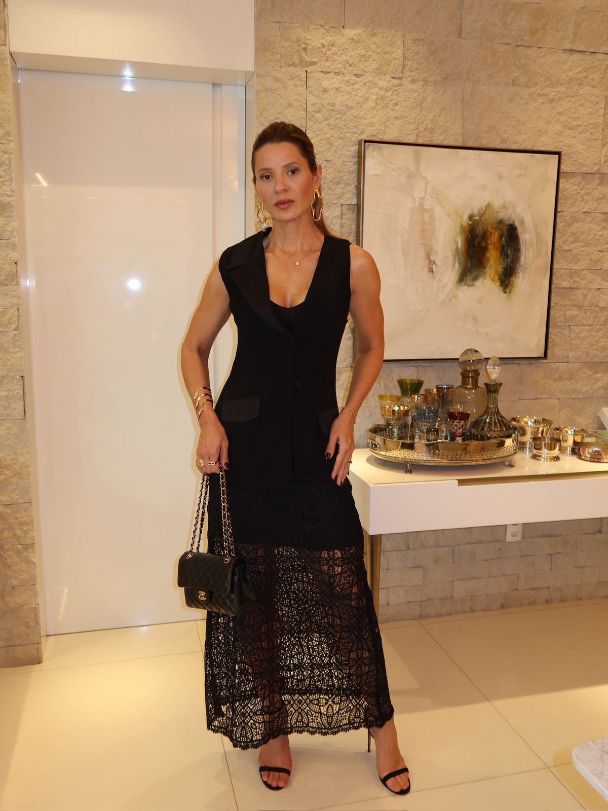 Coordenação sugerida: Pode ser usado com calças de alfaiataria, saias lápis ou vestidos justos, criando contrastes inteligentes. Fica especialmente marcante coordenado com a calça flare Clarisse ou com base neutra, deixando que o design da peça se destaque com naturalidade e força visual.