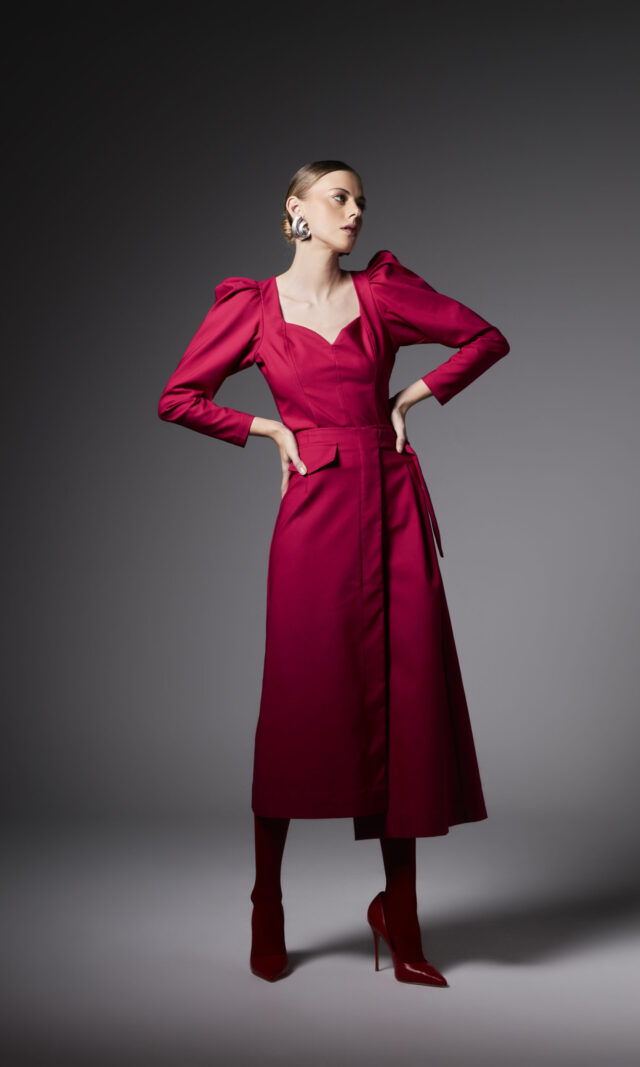 SAIA MIDI KATHERINE de Cotton Dense Span tem um design feminino e moderno. O comprimento midi com barra assimétrica, confere um toque contemporâneo e sofisticado ao visual. Possui lapelas que adicionam um detalhe elegante, além de uma faixa cinto que destaca a cintura e completa o look com estilo.