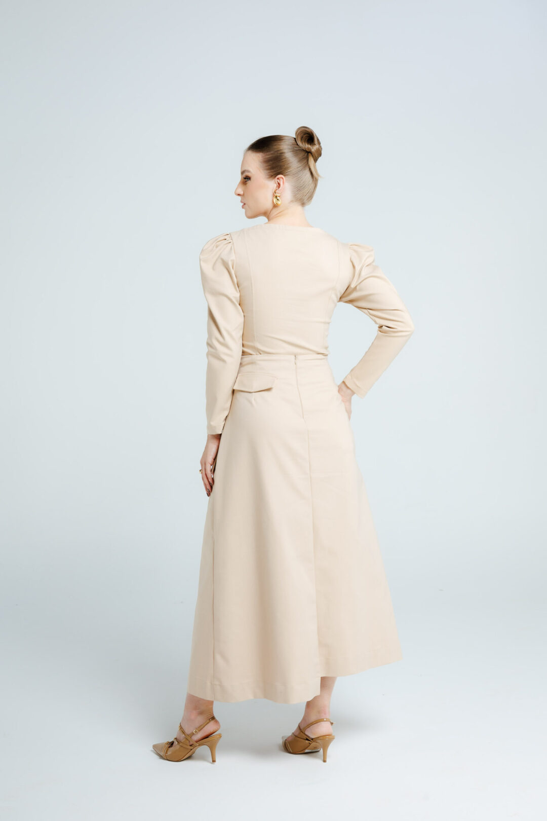 – Penteados: Cabelos presos, como coques ou rabos de cavalo, ajudam a destacar os detalhes da saia.